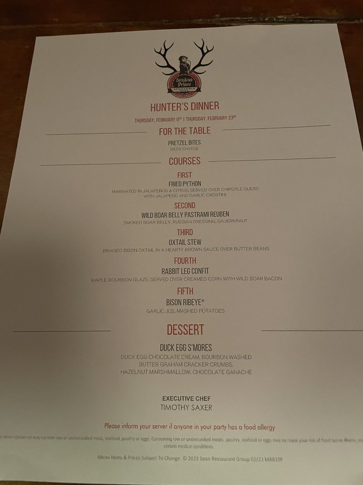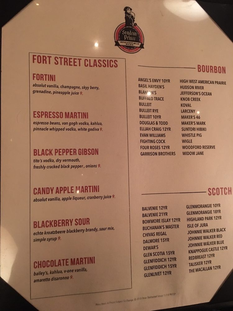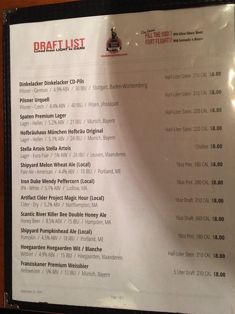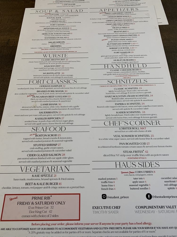 Student Prince Menu (Update 2025)